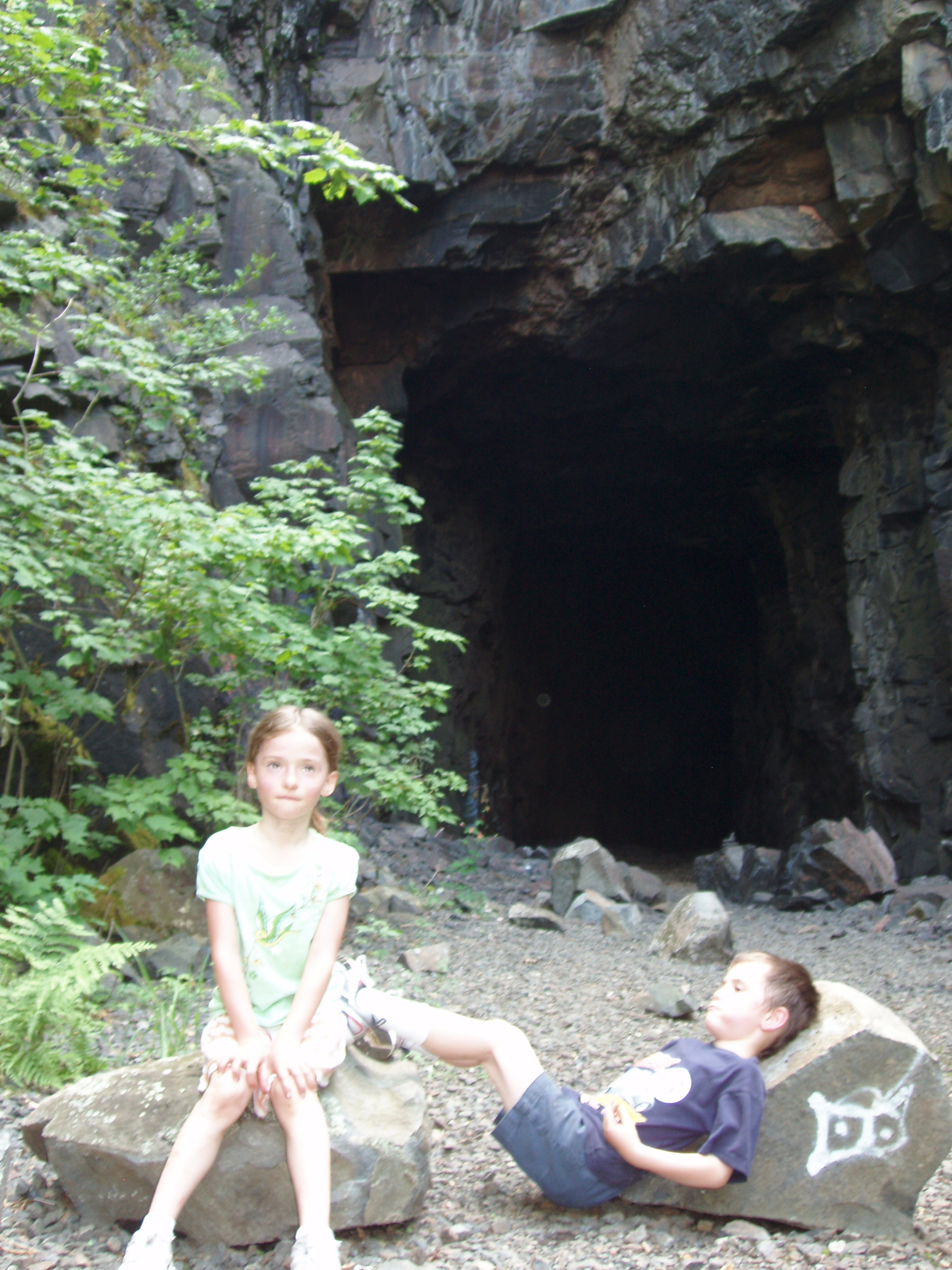 My kids donned head lamps and embraced their first spelunking experience with gusto. It was cool and dark in the tunnel as it curved along, and a welcome breeze wafted through in memory of the steam engines that hauled ore through it 100 years ago. Reaching the other side we were pleasantly surprised to discover that the lake side of the peak was significantly cooler than the inland side.
