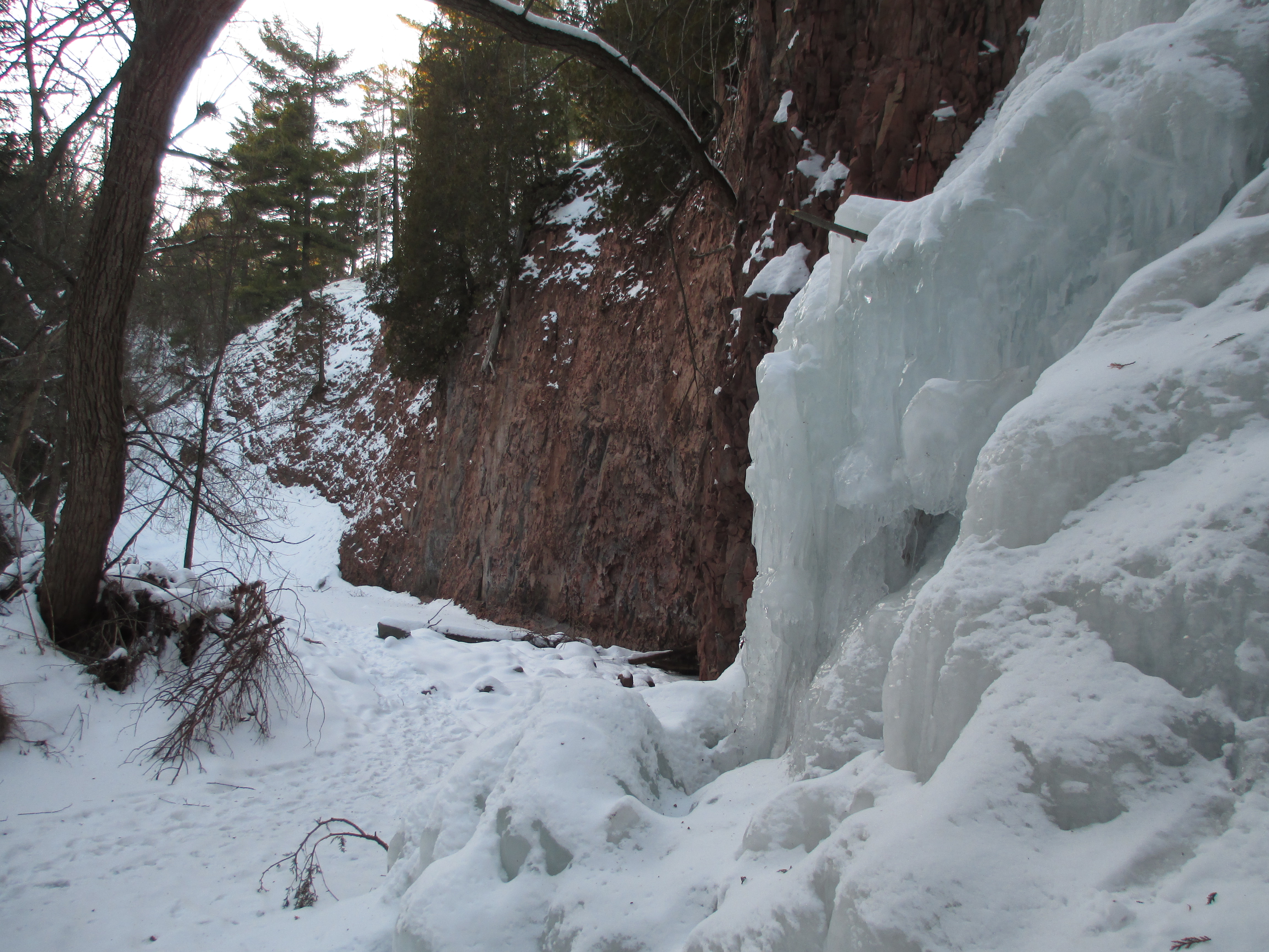 Most of our family is battling a cold. I just can’t sit around breathing stale air all weekend, so the dog and I ambled on up Tischer Creek. It’s one of my favorite short hikes, and is fully surrounded by the city of Duluth about a mile from my house. This little canyon is very private, inviting, and magical.