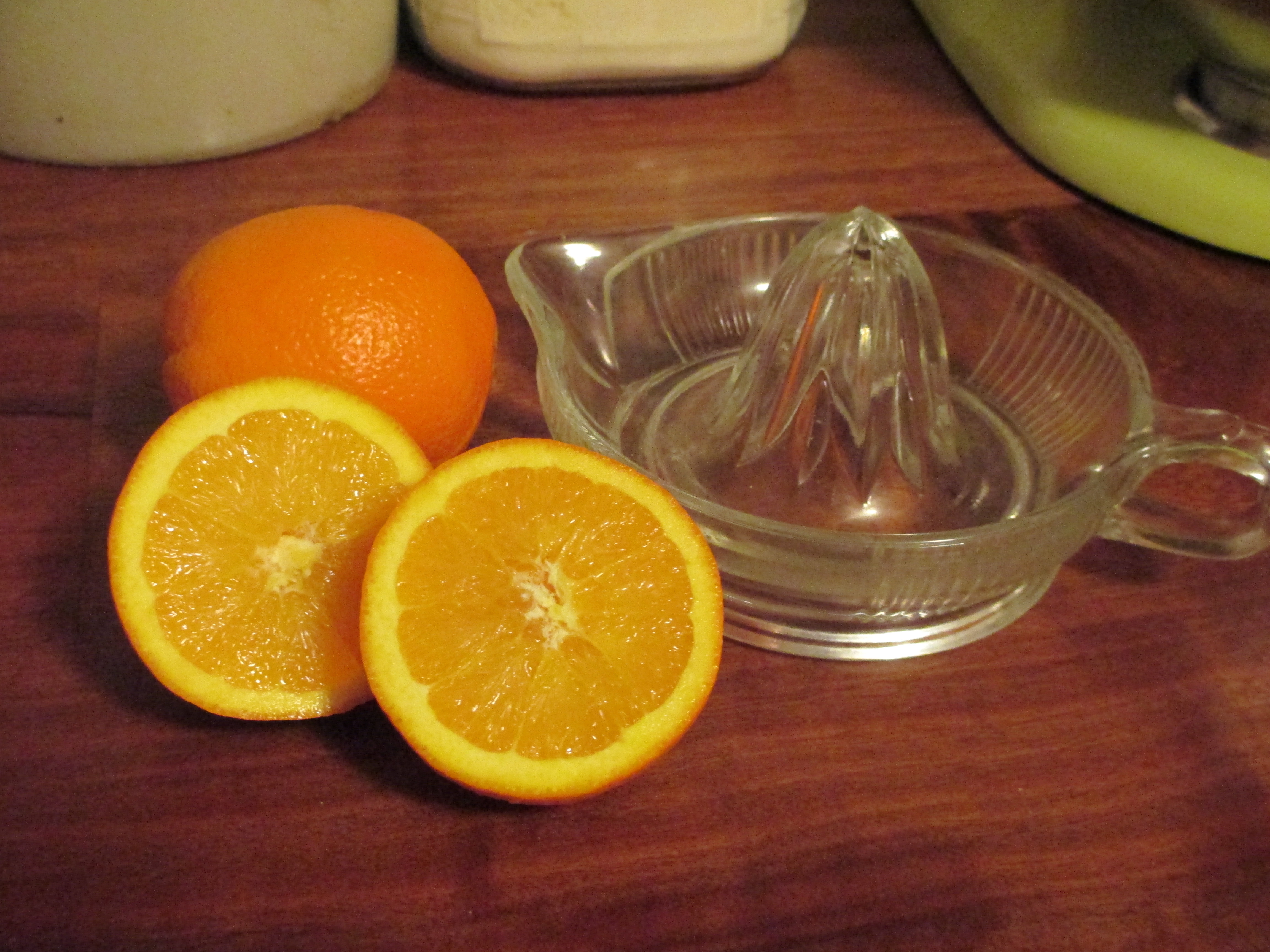 Of course fresh squeezed OJ is a must. You’ll be surprised just how good the real thing is. Go out and find a vintage glass juicer at an antique shop (they’re easy to find for less than 10 bucks). These are simpler to use and clean than any of the new fandangled stuff out there, and easier to store in a convenient place so you’ll actually use it when you need it.