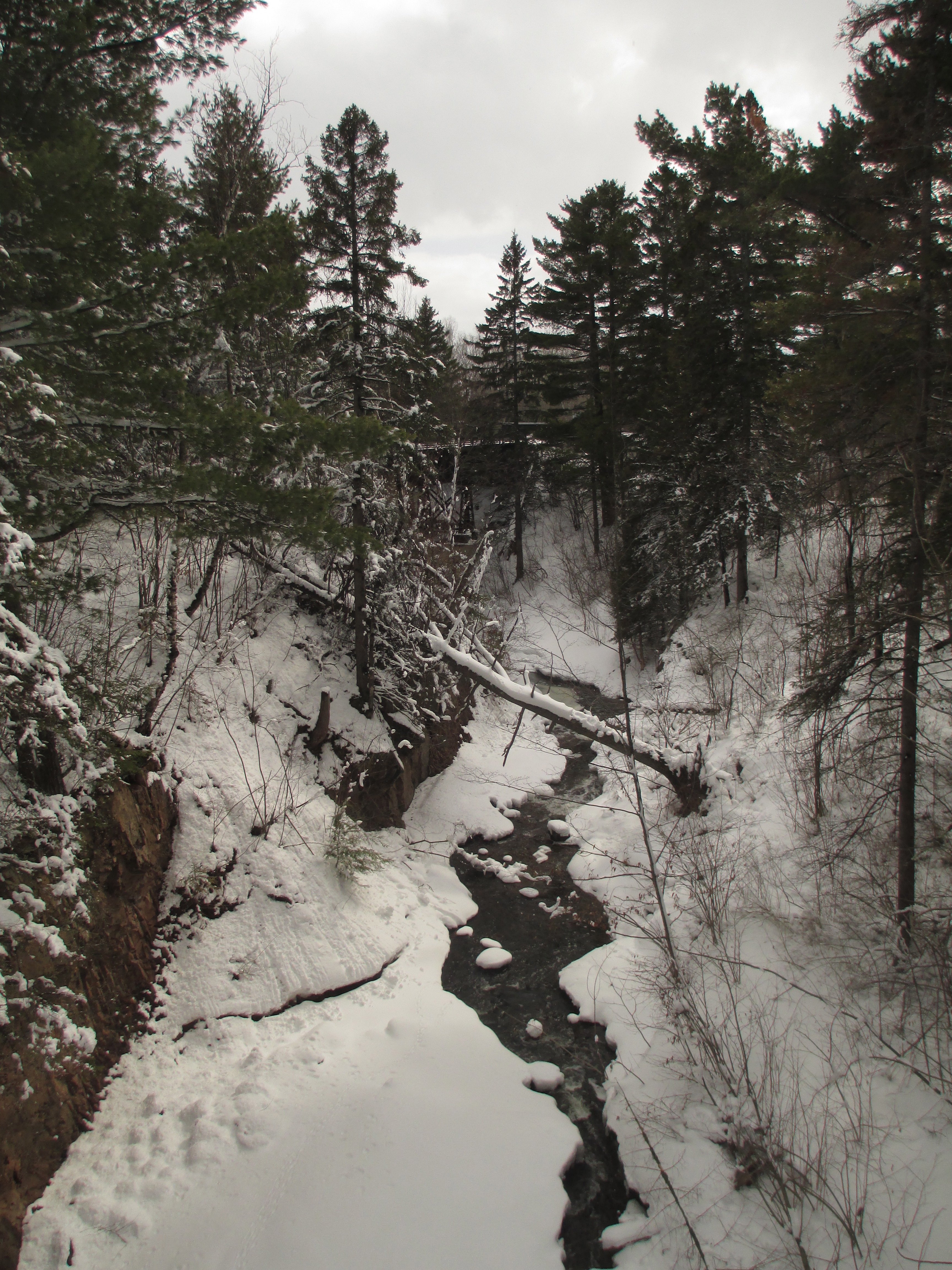 Water, like a ribbon of hope, flows through the snow within this ravine. The world isn’t completely frozen anymore, and all this precipitation will soon be rolling downhill.
