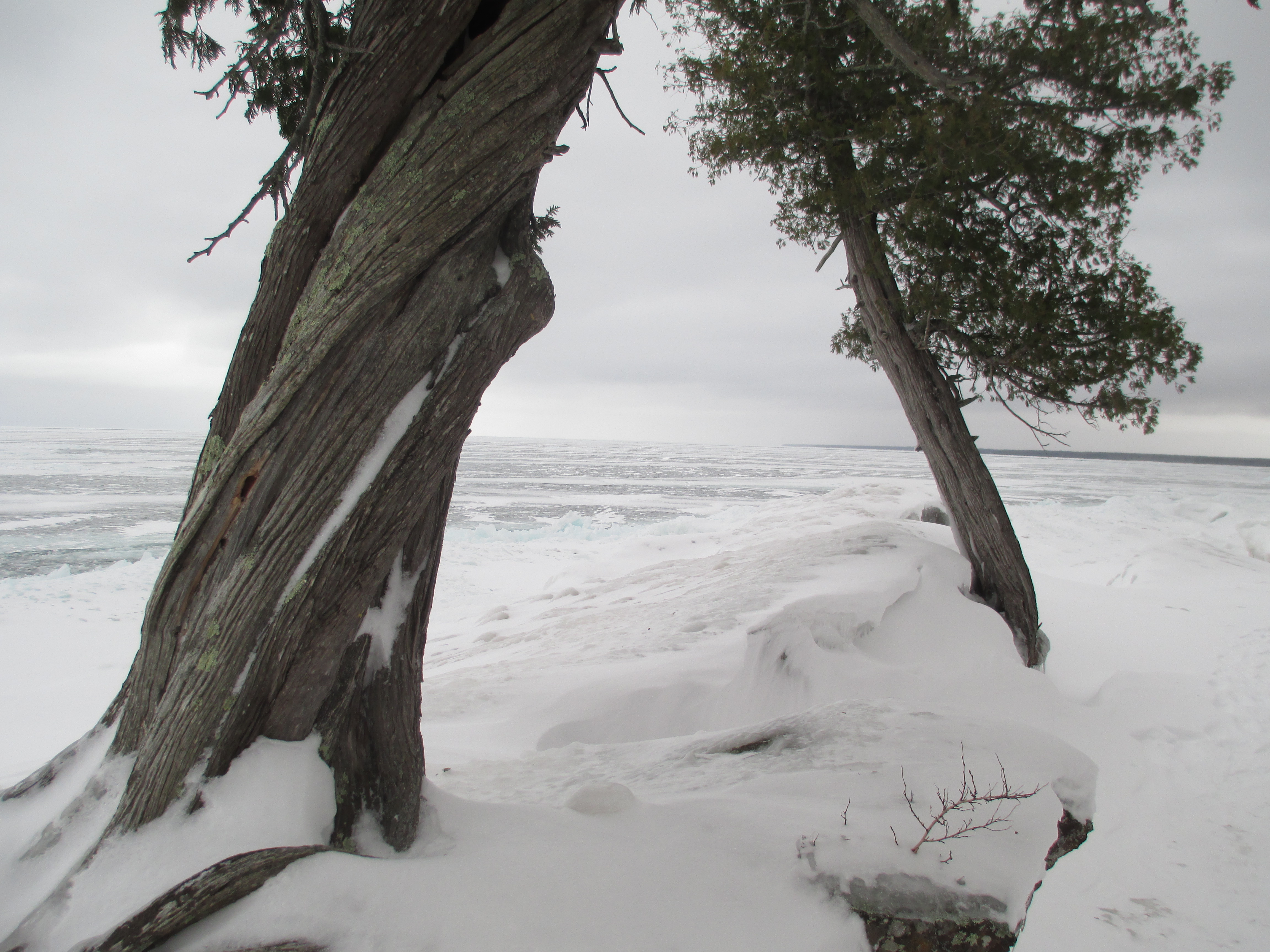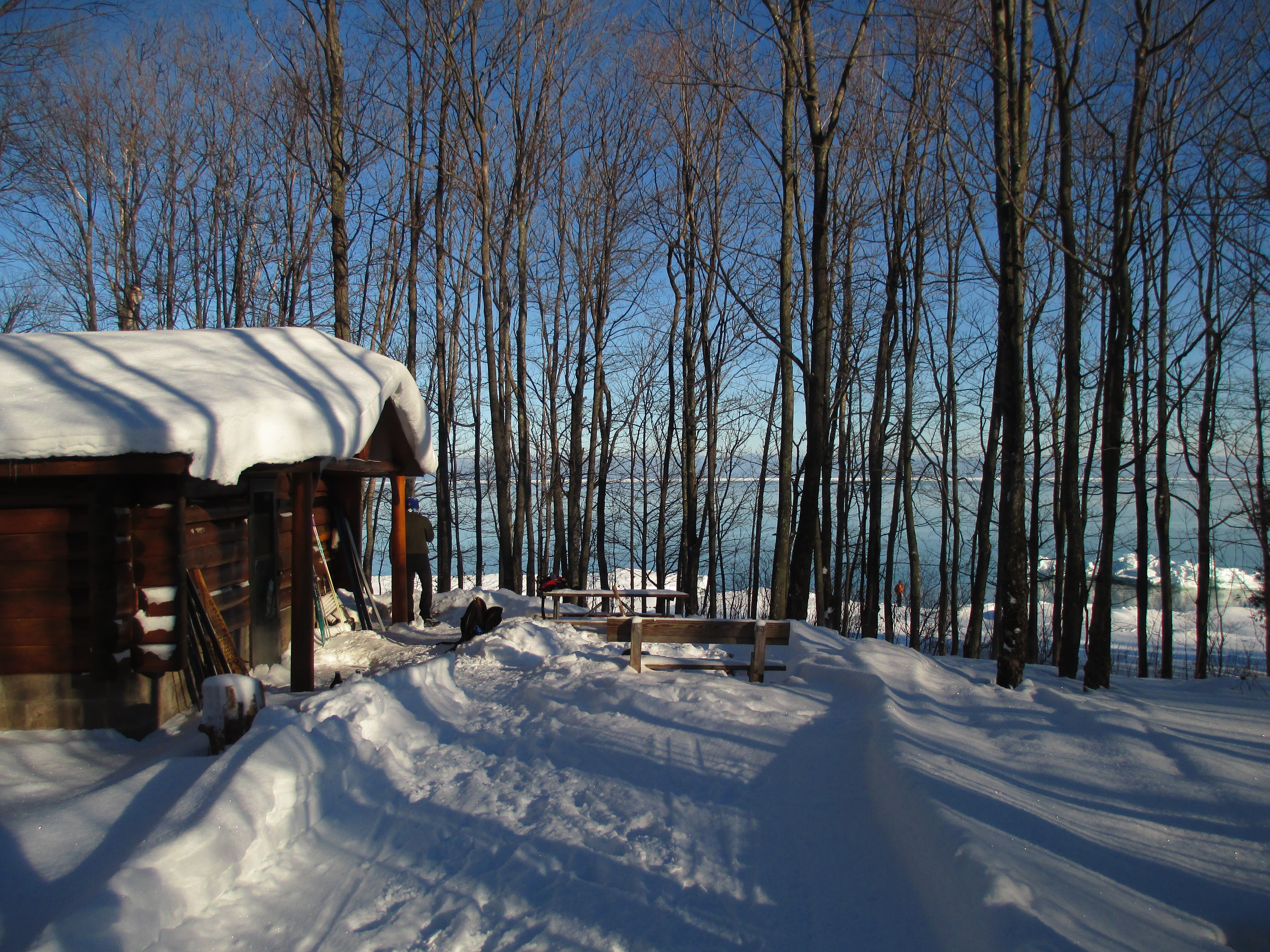 This weekend I just returned from my annual trip with friends spent in a backcountry cabin. Previously we’d ski in 6 miles through the backcountry to a secret abandoned shack up in border country, but recently we’ve gotten more posh. This year we rented a remote cabin in the Porcupine Mountains in the U.P. of Michigan. I’ll probably cook up a column on it soon, but couldn’t resist sharing some pictures now. We stayed in the Whitetail cabin, which was just a gradual 1 mile downhill ski from the parking area to its prime location on the shoreline of Lake Superior.