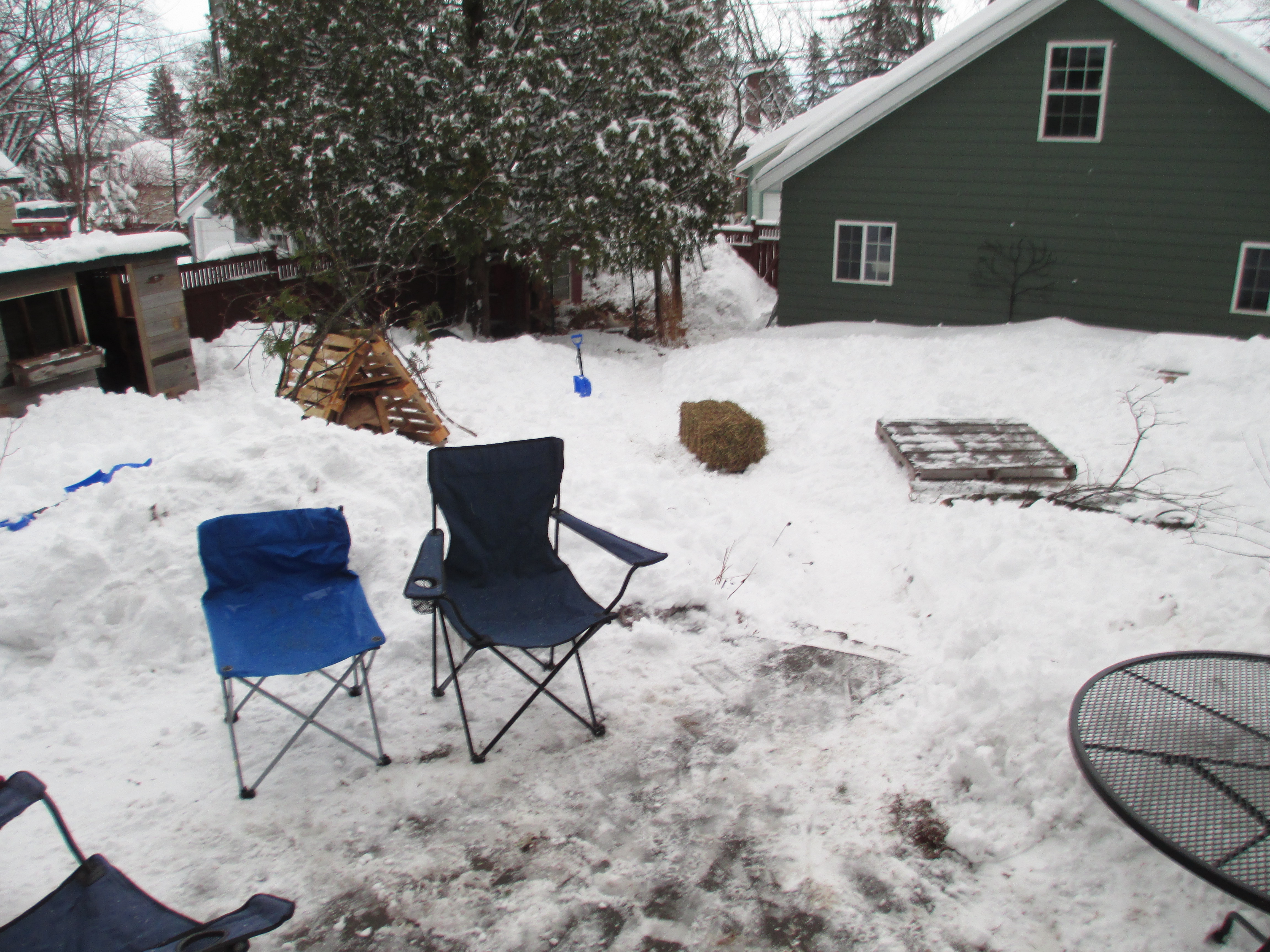 The contrast with the fire pit was striking this time around compared to last year. Due to the snow depth it left a 2 foot deep crater this year, and looked like a small asteroid had pock marked the yard in a perfect circle roughly the diameter of a Christmas tree. Four families disposed of their Xmas trees this way, and the resulting flames and sparks were spectacular as the pyrotechnics soared 15+ feet into the air and induced a little bit of fear into all of us in our small yard.