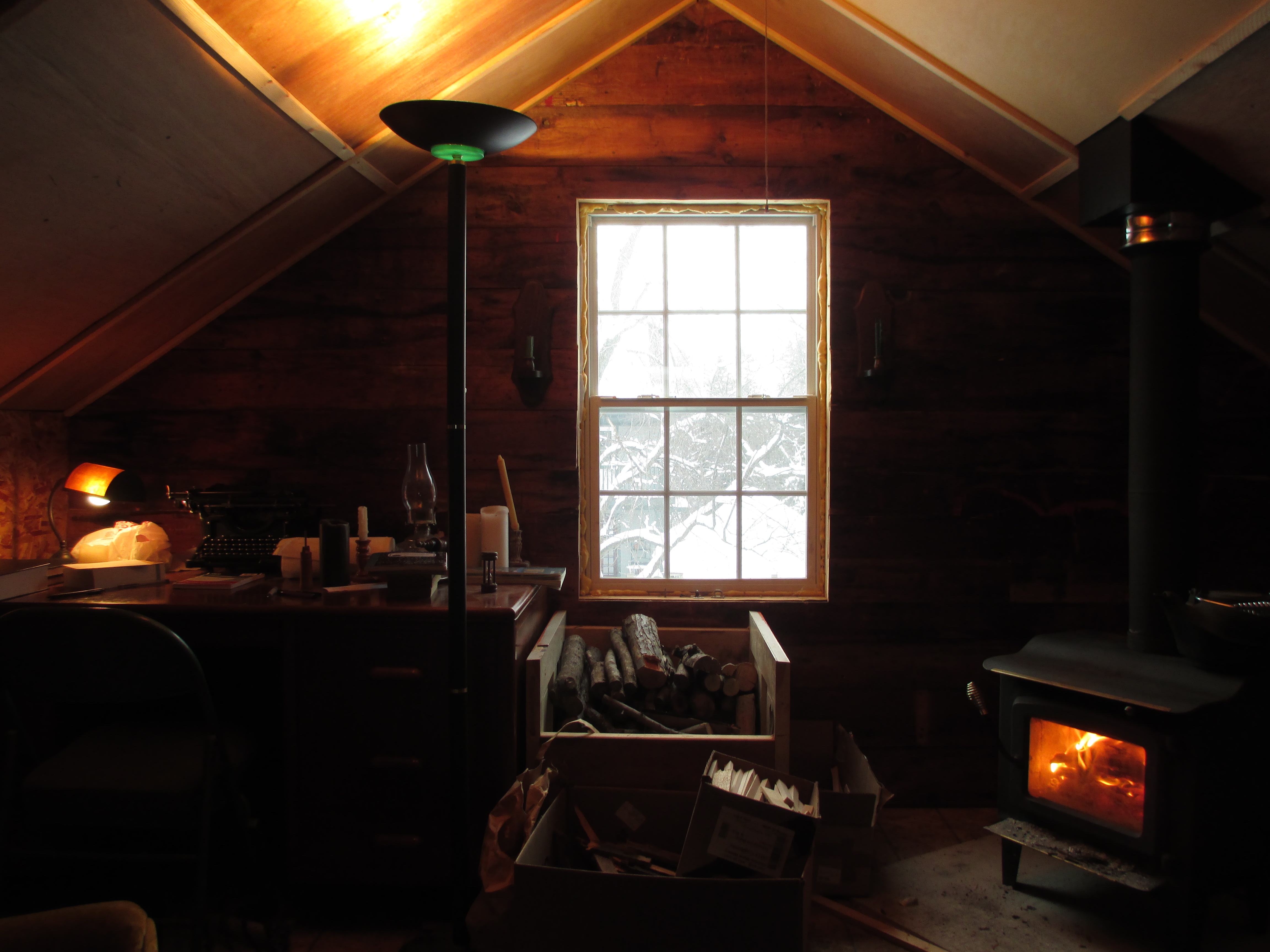 All of the wood used to heat my small writer’s “shack” is hand-cut. Most of it is junk wood that is eschewed by everybody else. Following walks with the dog, I often arrive home dragging a branch that previously littered the street as detritus. In my poverty I find myself scavenging for every last scrap of wood that can be found in the neighborhood. I continually find great inspiration and meaning through not only enduring, but rather enjoying humble circumstances. Being home now, jettisoned by a corporation like a spent rocket abandoned from a space shuttle, I may need twice as much fuel to get me through a winter of writing. The manual labor involved is worthwhile and character-building.