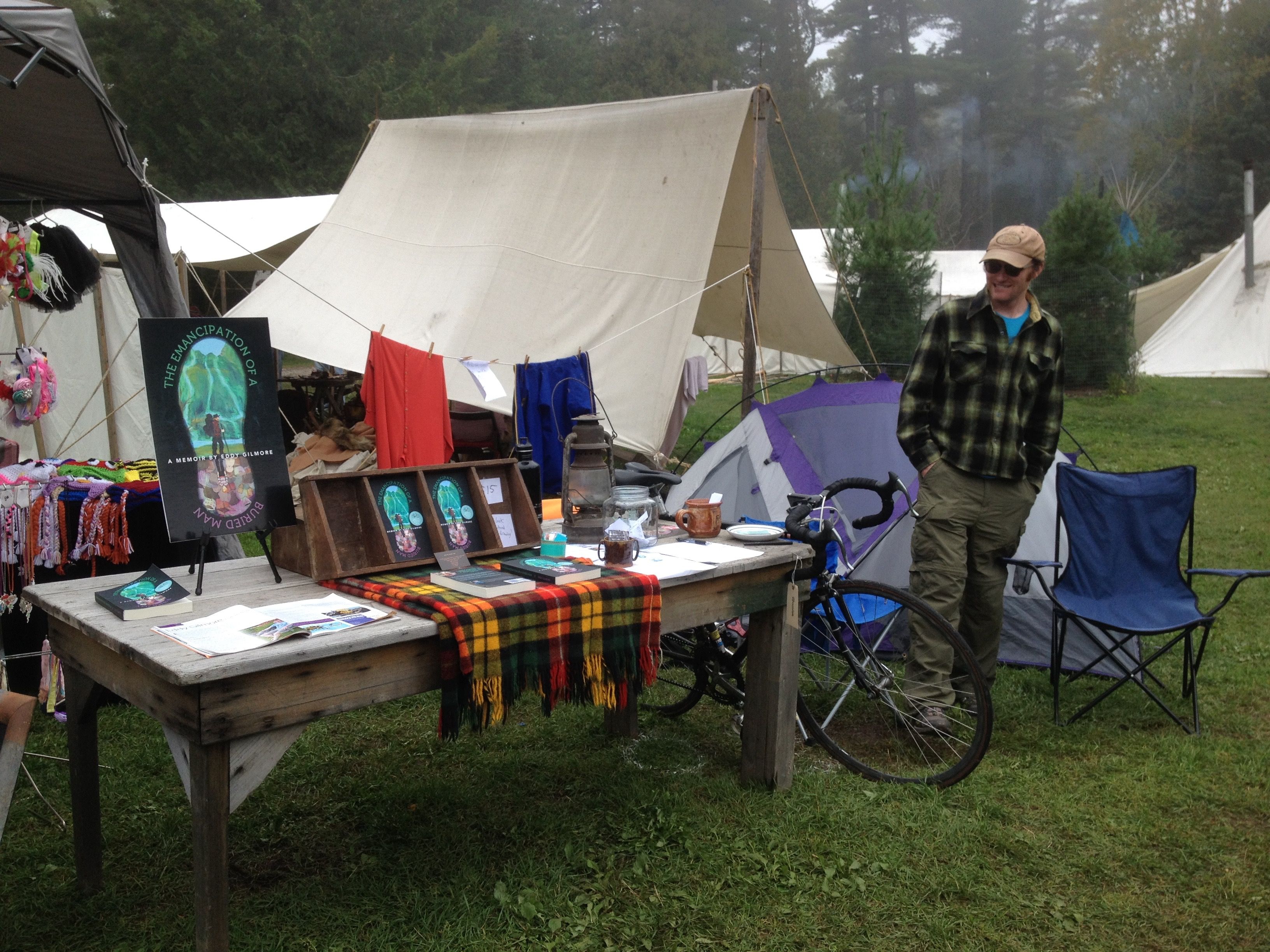 Most of my efforts haven’t resulted in flashy success, however. It’s more of a day in and day out slog to market individual copies. Here you can see a recent event I participated in near my house called the Lester River Rendezvous. The organizers allowed me to set up my “wares” at the last minute. My goal was to sell 10 books.
