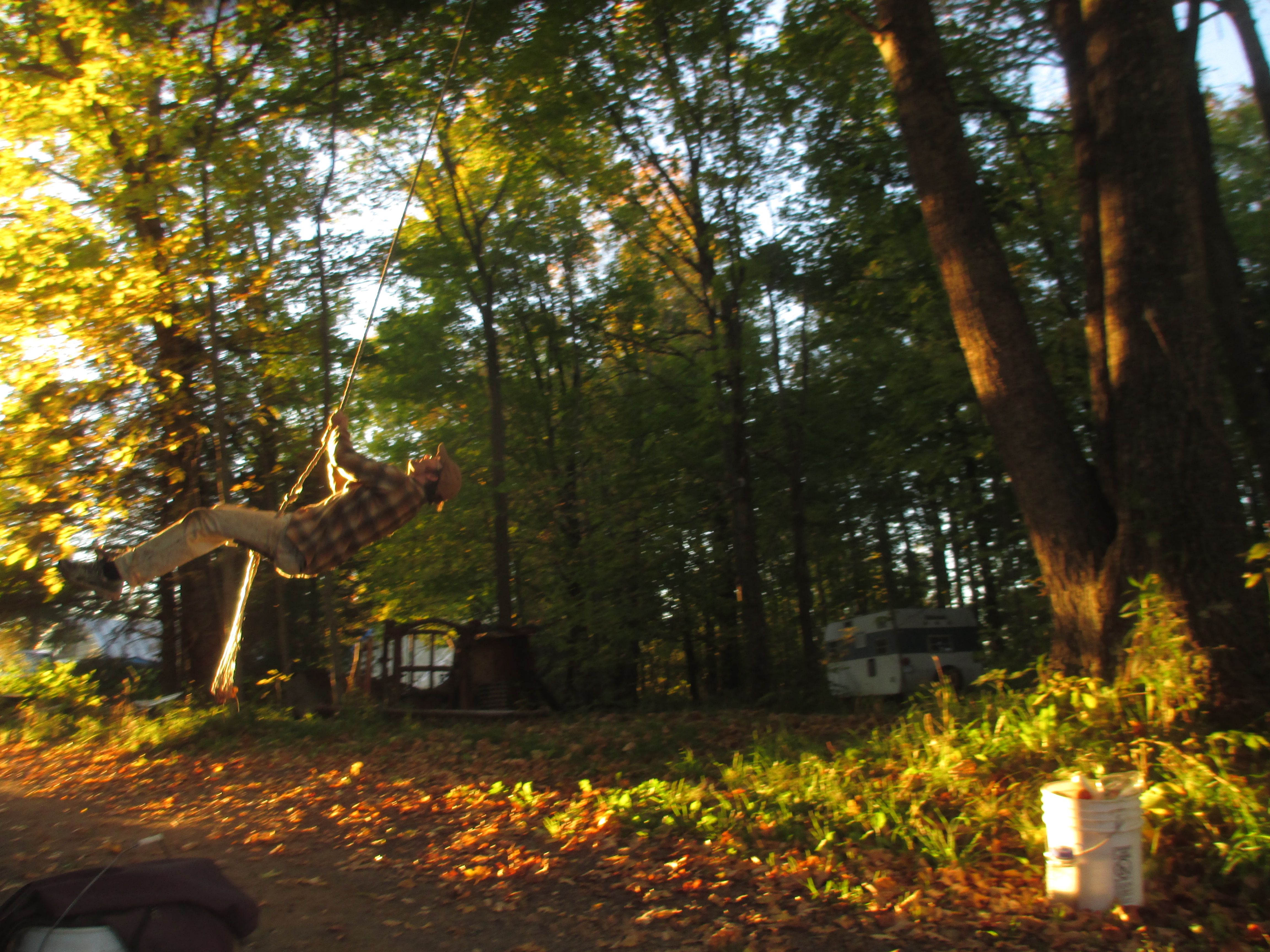A writer is an observer. The imperative is to suck the marrow out of all of life, which should be intensely interesting and surprising. There’s so very much to delight in, figure out, and process. The depth of my ignorance in every area of life seems to be bottomless, but on the bright side, this provides a lifelong opportunity for adventure and discovery. I really don’t know how to further my “career.” Farming at minimum wage, for example, makes zero sense/cents, especially when considering that an average roundtrip commute each day is more than two hours long (equal parts bicycle and rideshare by automobile). I return home to my other job as a part-time dishwasher for my family in the dark—bike trail illuminated by a light loaned to me by a good friend—exhausted at the end of a 12-hour-day. It feels good, though. After spending a dozen years in front of computers vocationally, I find that I love to get dirty while doing honest, wholesome work. In the picture above I am enjoying the farm’s impressive rope swing. In the lower-right hand corner you can see a bucket. It contains gleanings from vegetables that wouldn’t otherwise be sold. I love bringing these home to the family.