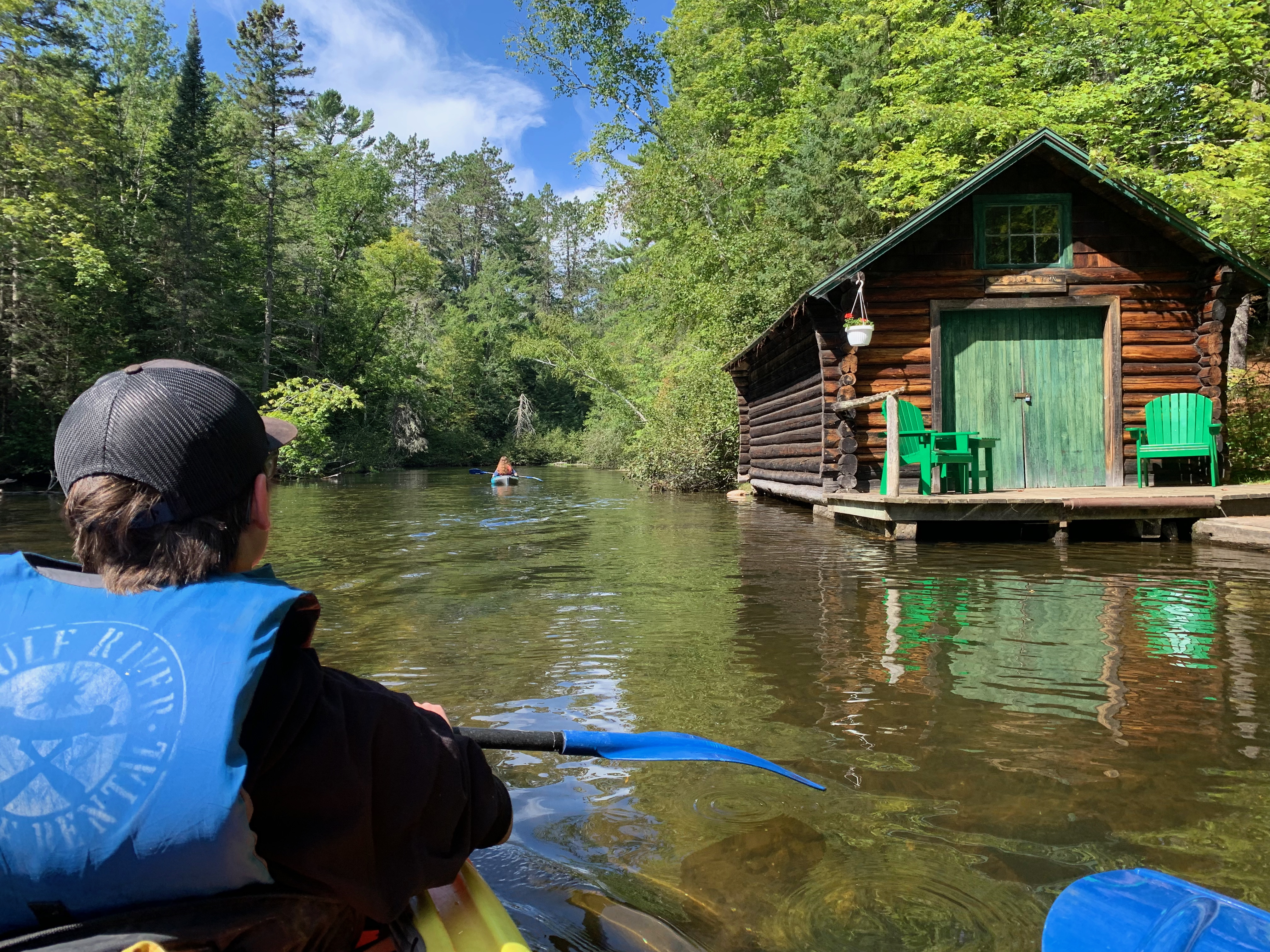 The river is festooned with character, with historic cabins (100 – 120 years old) around several bends, such as this quaint cottage on an island where President Coolidge once lodged and fished. By the way, Presidents Grant, Grover, Hoover, and Eisenhower have also visited the Brule…