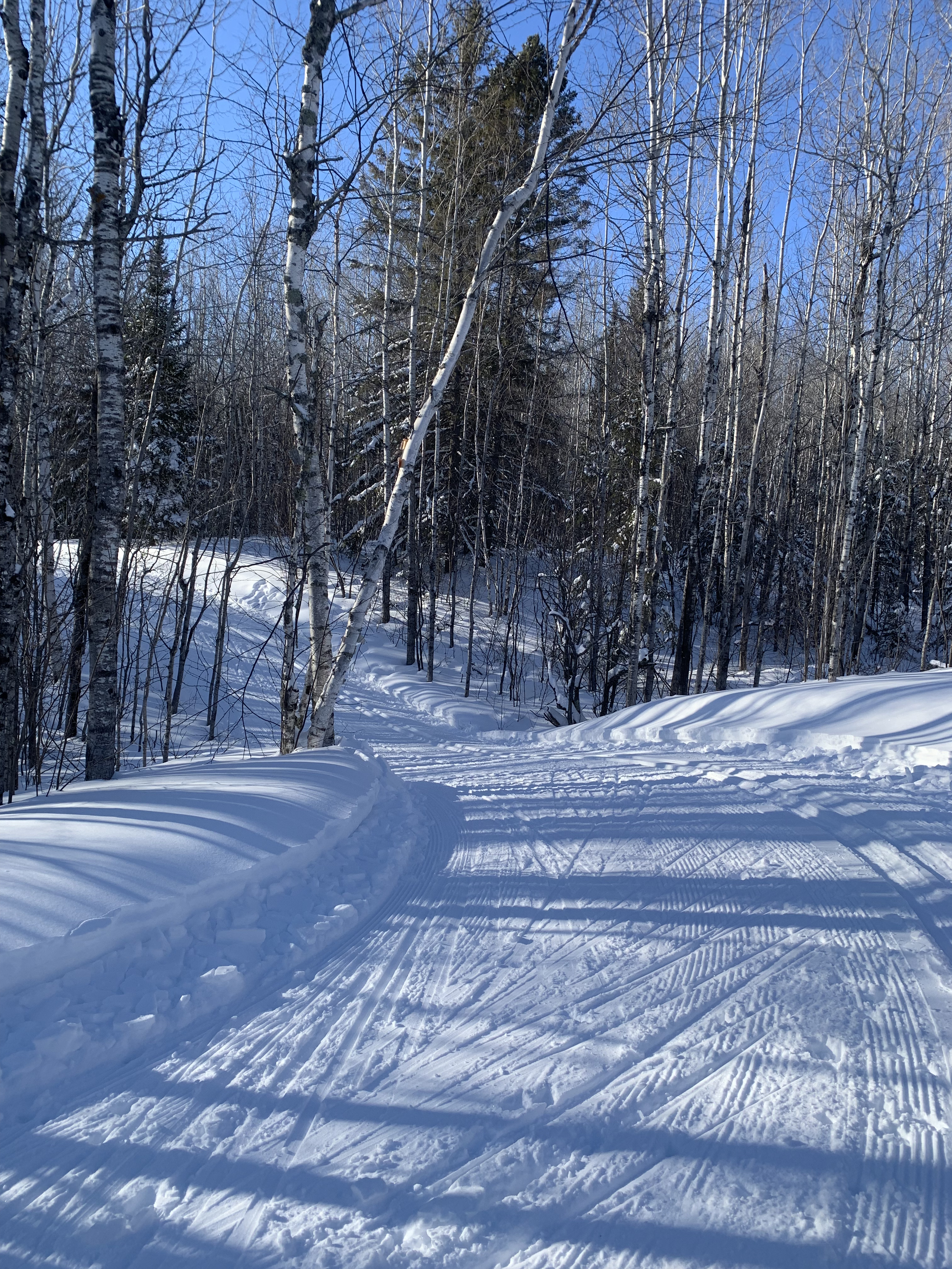 Today, in contrast, St. Scholastica’s (a local college) young men and women dominated the course. I didn’t politely step aside either, but made them surge past me as the training obstacle I was. What a privilege to be out on the same course as these kids with so much future ahead of them. FYI, Chad Salmela (the NBC announcer for Nordic skiing who famously cried out, “Here comes Diggins!” during the 2018 Olympics) helped build the school’s cross country ski program, a legacy that appears to be enduring to the current hour. I am writing this immediately after returning home from the experience.